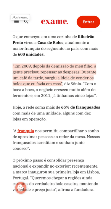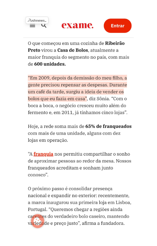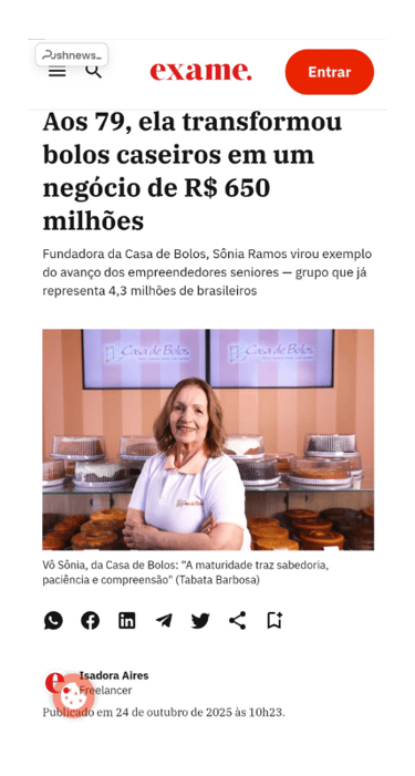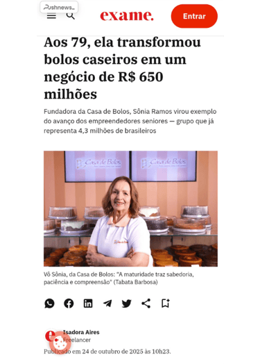 A reportagem completa você encontrará em: https://exame.com/negocios/aos-79-ela-transformou-bolos-caseiros-em-um-negocio-de-r-650-milhoes/